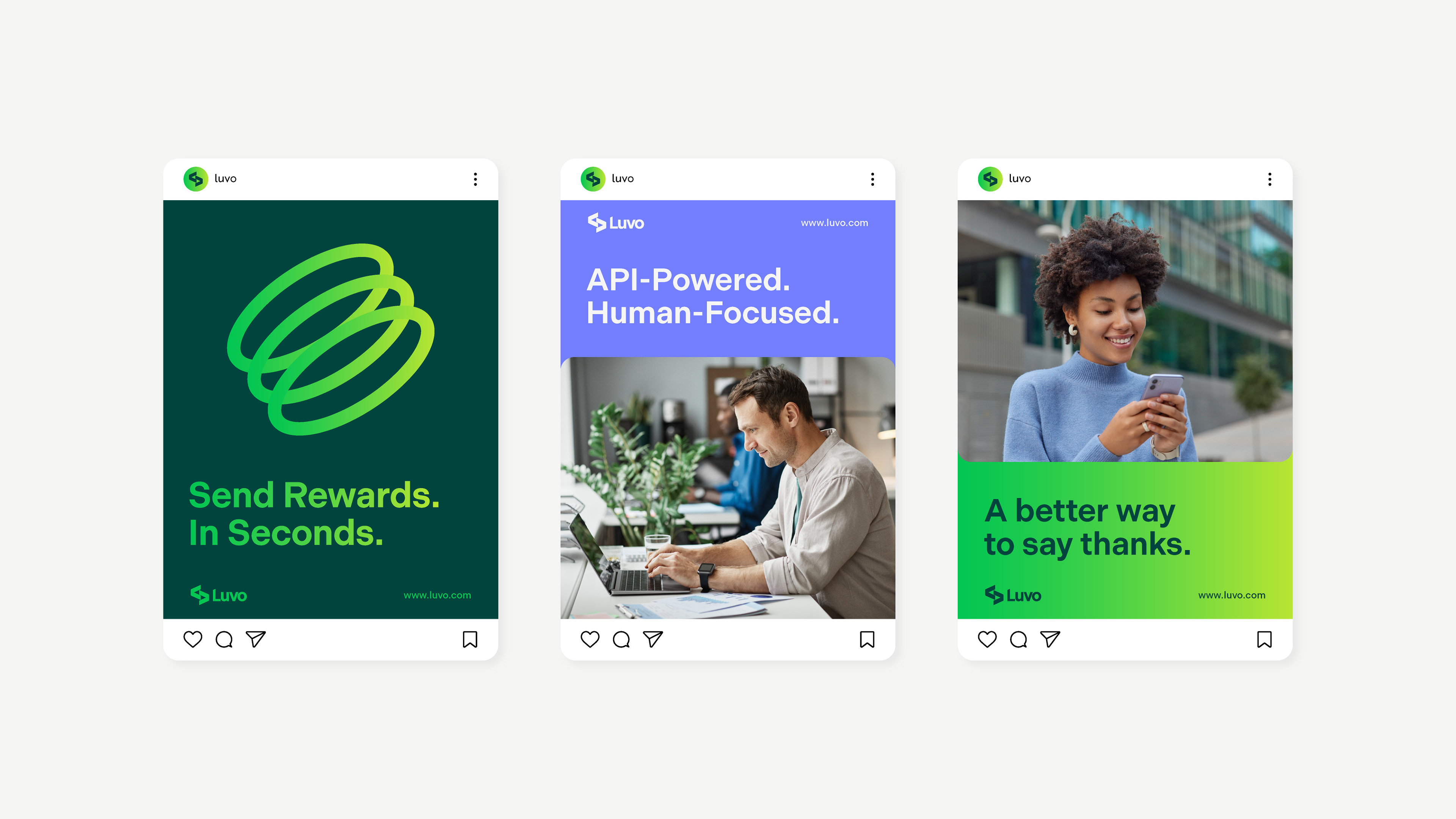 Luvo is a concept brand for a digital rewards platform that enables businesses to send gift cards and incentives instantly to customers, users and employees.
