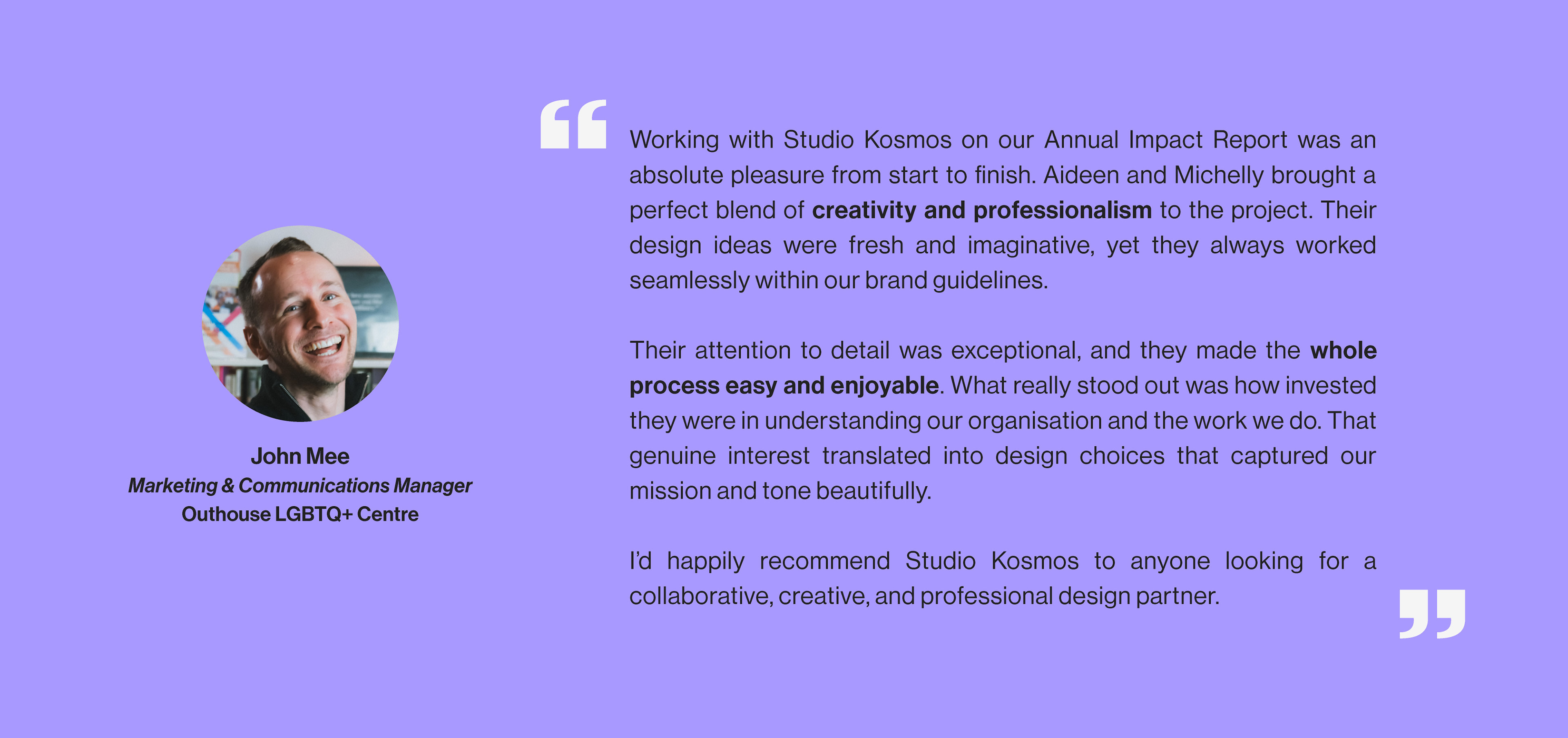 We work with non-profits because we believe good work deserves to be seen, understood and supported. Creating thoughtful and responsible design to support organisations making a difference.